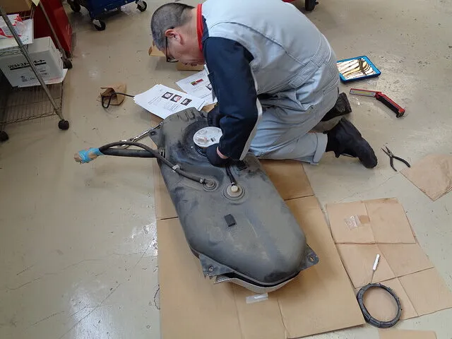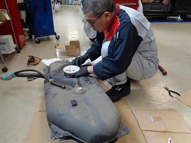 燃料タンクを脱着します。その後燃料タンクモーターASSYを脱着します。